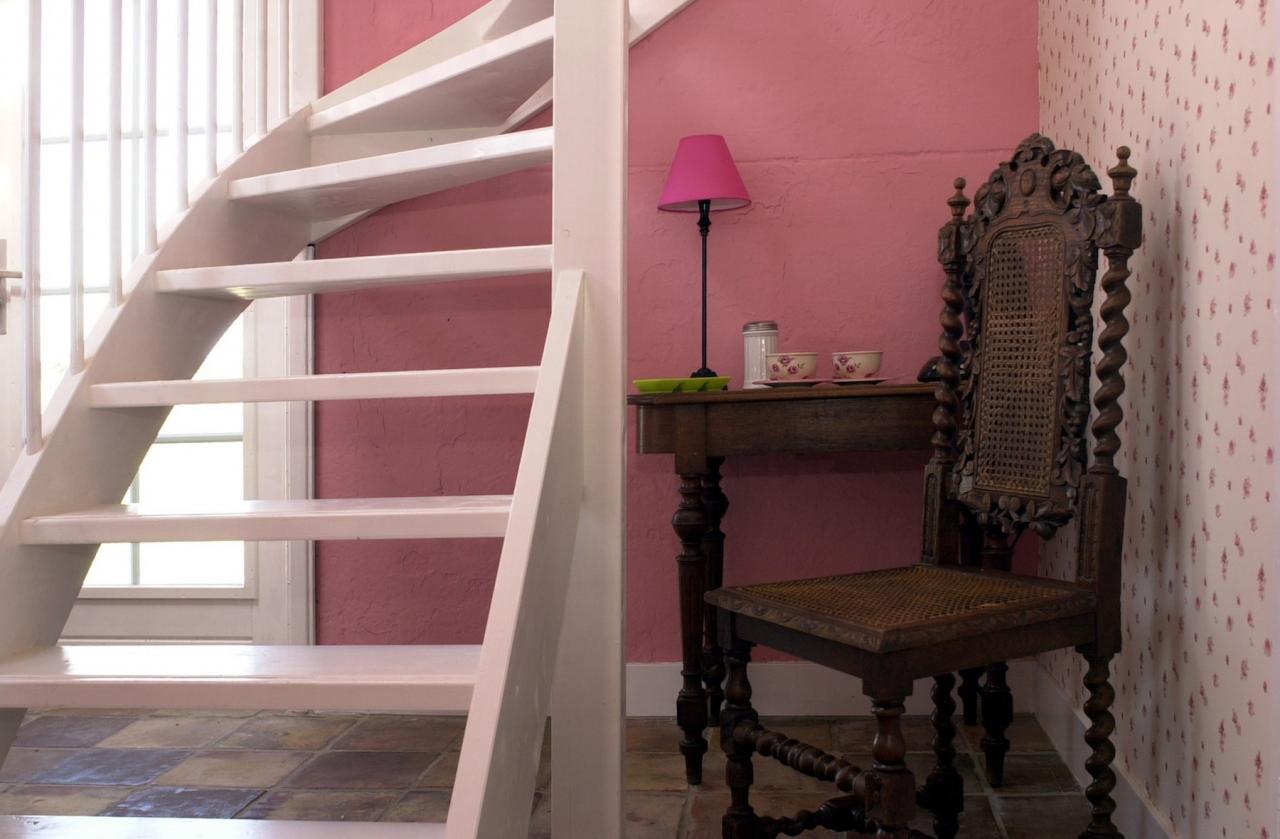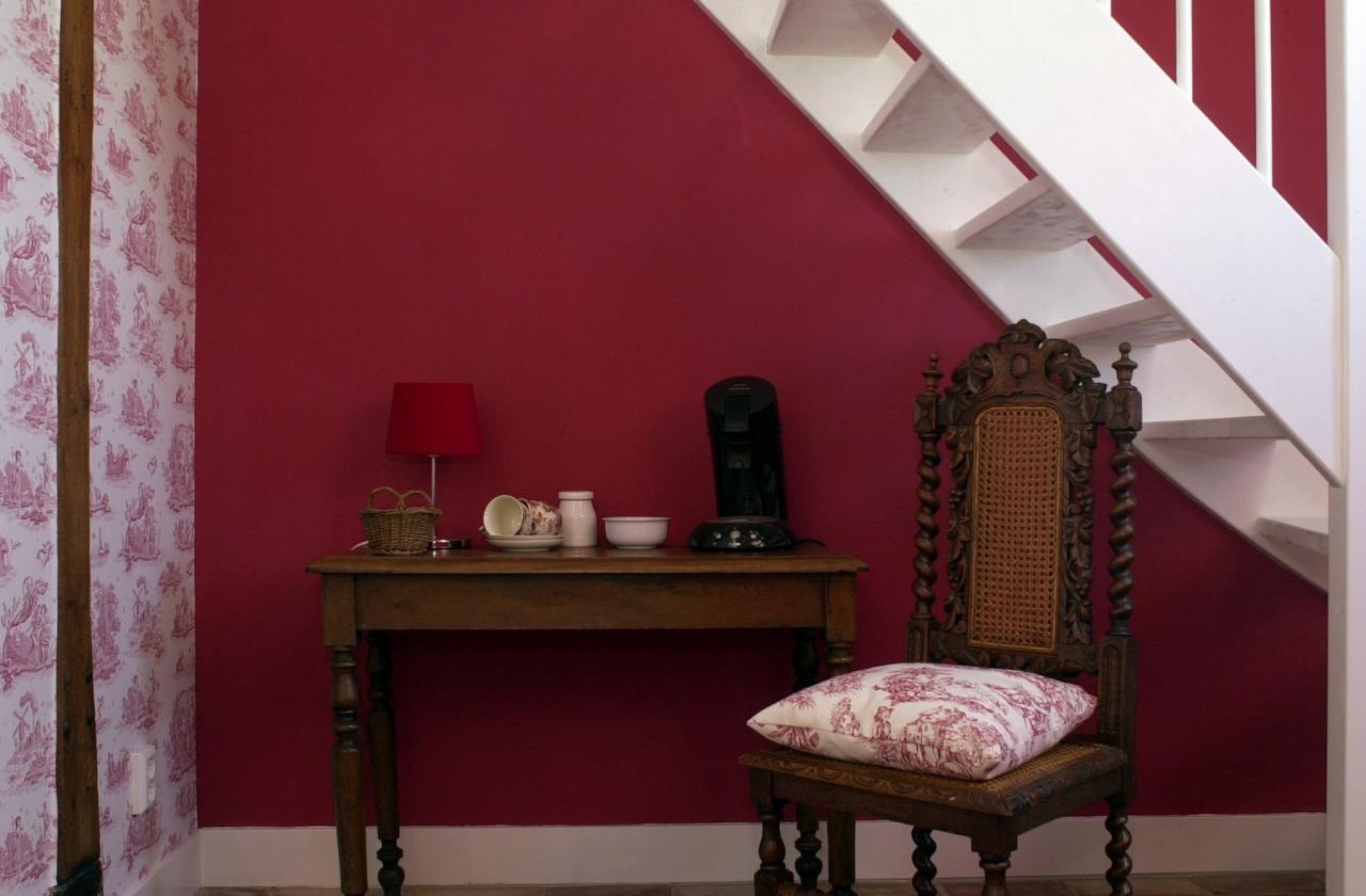 Deze sfeervolle kamer is uitgevoerd met een groot tweepersoonsbed en een luxe badkamer met stortdouche. Een sfeervolle kamer in rode tinten met aan de achterkant een oorspronkelijk stalraampje met uitzicht op de wijngaard en de dierenweide. Voor iedereen die optimaal wil genieten van het platteland en bijna tussen de druiven wakker wil worden.