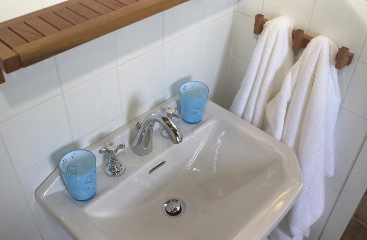 Dit is de ruimste kamer met extra lange bedden (2.20 meter). Als u het prettig vindt, kunnen de bedden uit elkaar geschoven worden. Deze kamer heeft een ook een grotere badkamer met ligbad, zodat u na een lange fiets- of wandeltocht echt even lekker kunt ontspannen. Beneden heeft u behalve een zitje, ook een eigen deur naar buiten.