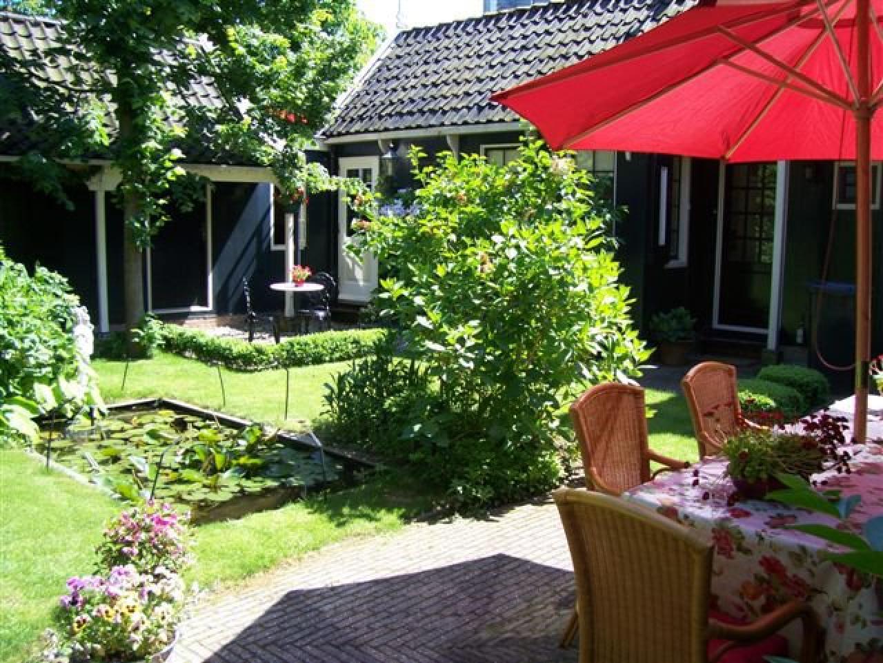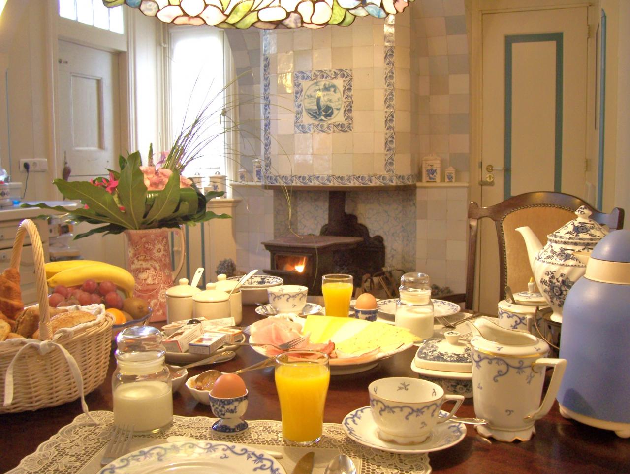 Het uitgebreide ontbijt wordt geserveerd in de grote Zaanse keuken met karakteristieke smuiger (betegelde schouw) met uitzicht op de tuin en met, op koude winterdagen een haardvuurtje. Met mooi weer serveren we het ontbijt desgewenst buiten op het terras aan de vijver.